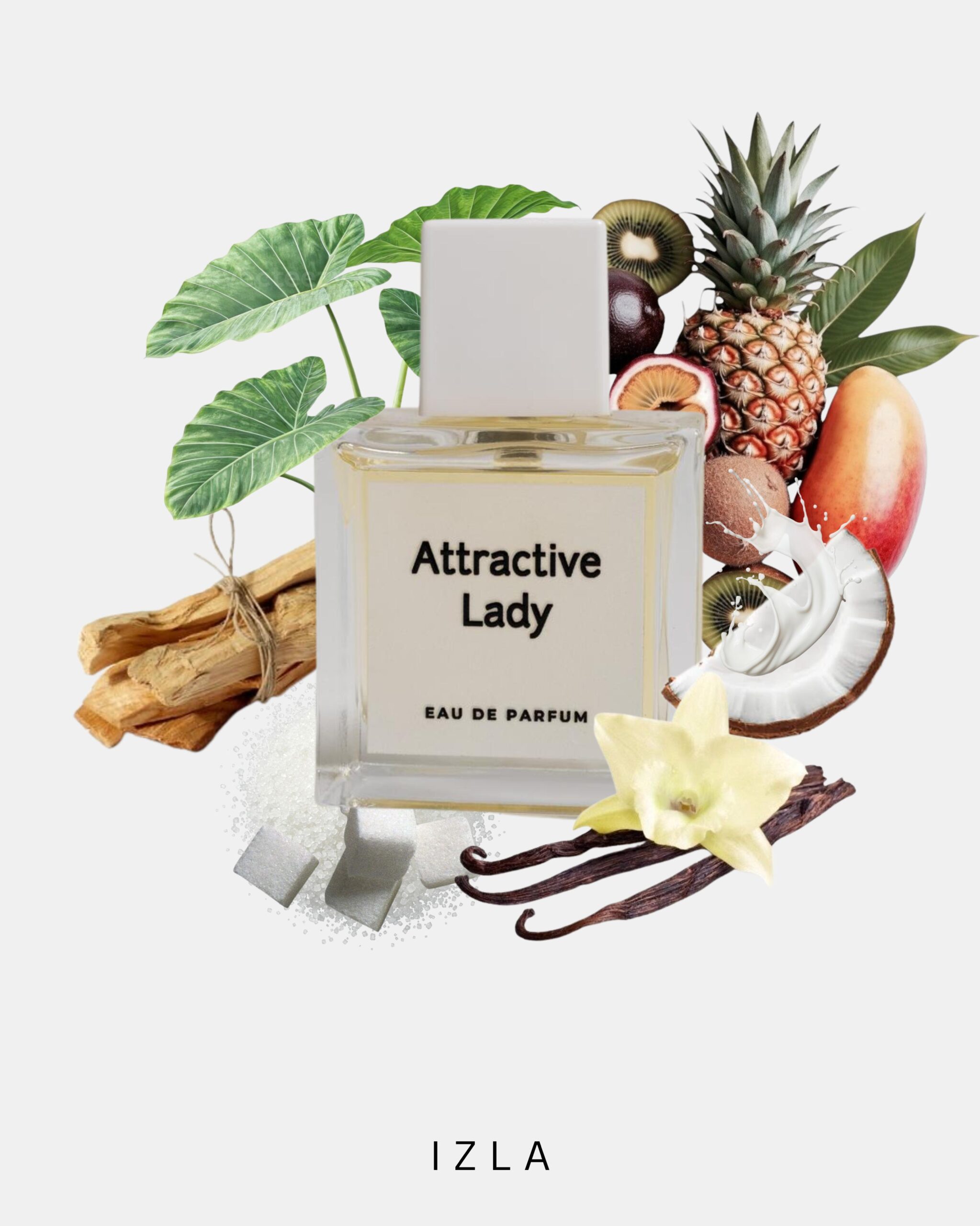 Attractive Lady is a warm and inviting fragrance featuring a rich blend of vanilla, tropical notes, and woody undertones. Its smooth, captivating aroma, enhanced by a hint of coconut, is perfect for everyday wear, leaving a lasting impression wherever you go.