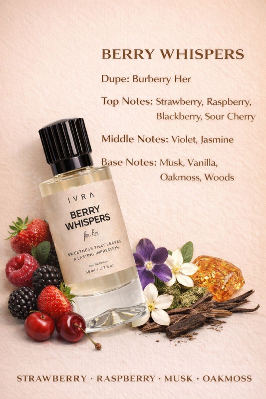 Juicy bursts of red berries, softened by jasmine petals and grounded in musk. Berry Whispers is playful yet elegant, designed for women who embrace sweetness with strength.