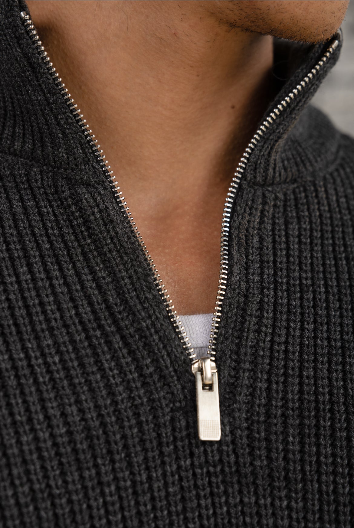 Goated – Knitted Quarter-Zip in Charcoal