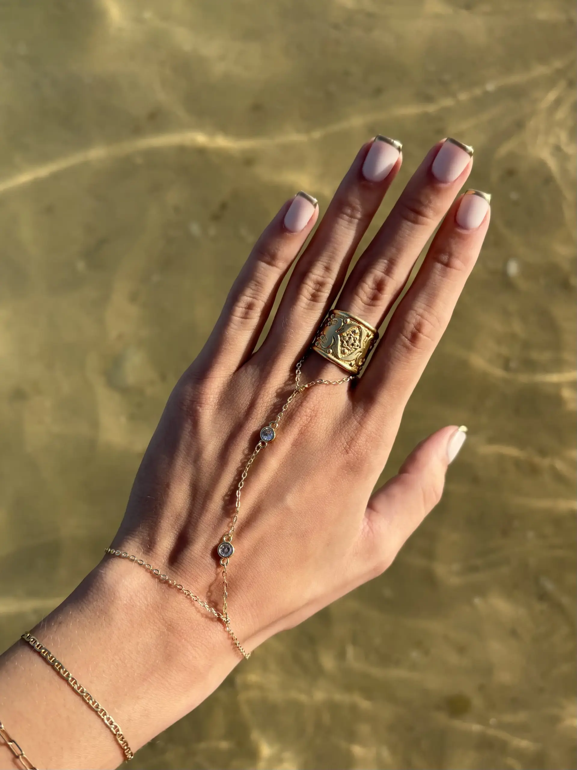 Standard size: Bracelet: 18 cms, Vertical part: 10 cms, Ring: 8 cms