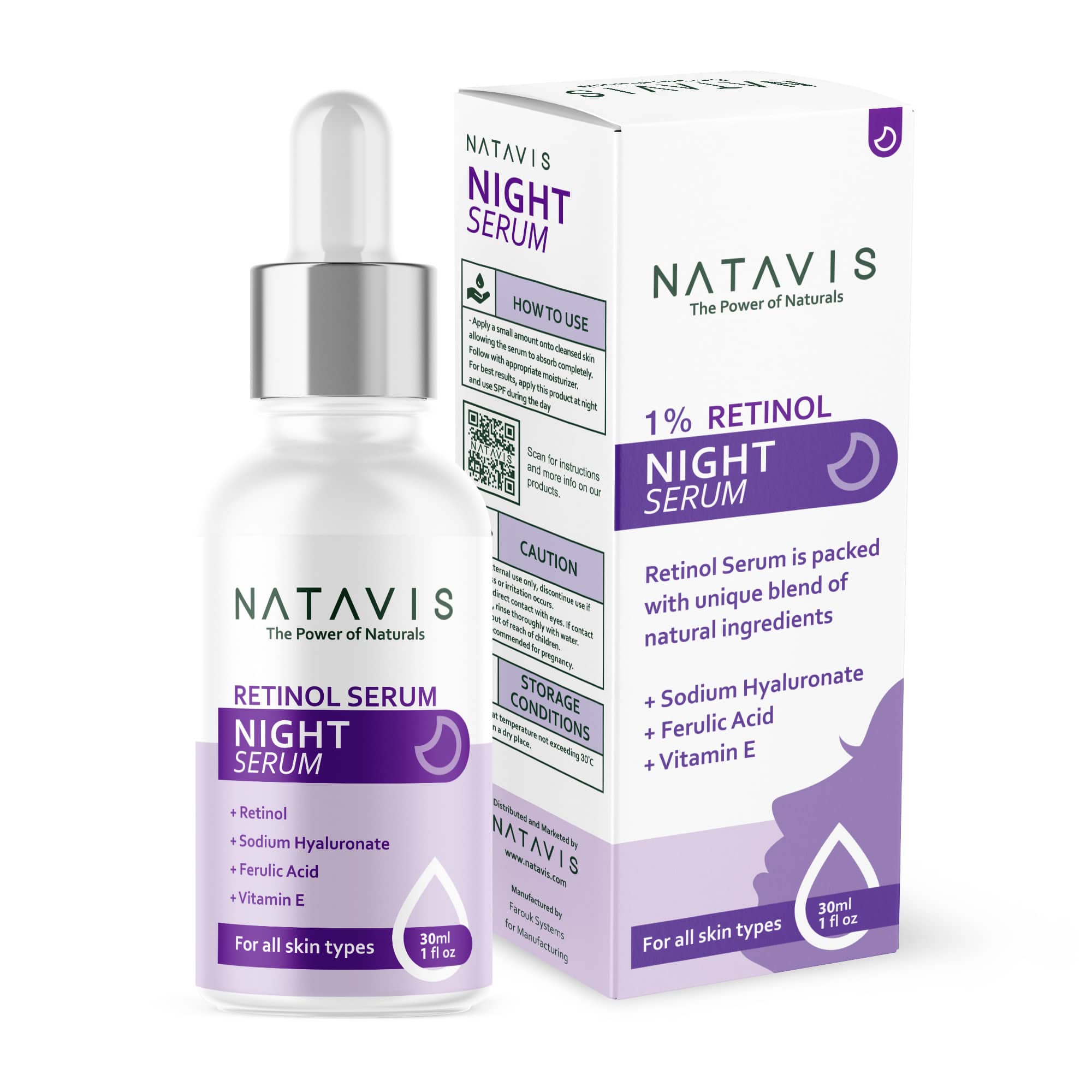 Natavis Retinol 1% serum , Anti-aging night serum with Encapsulated Retinol 1%, Peptides and Hyaluronic acid to combat wrinkles and fine lines, resist early signs of aging, enhance skin cell turn over for youthful, radiant skin.