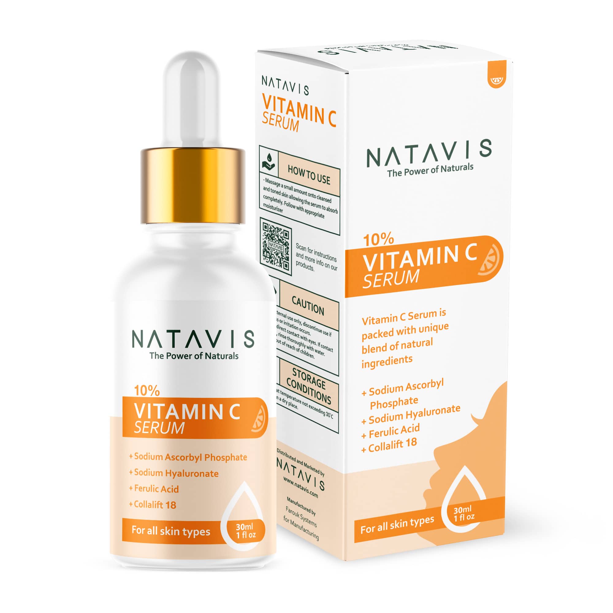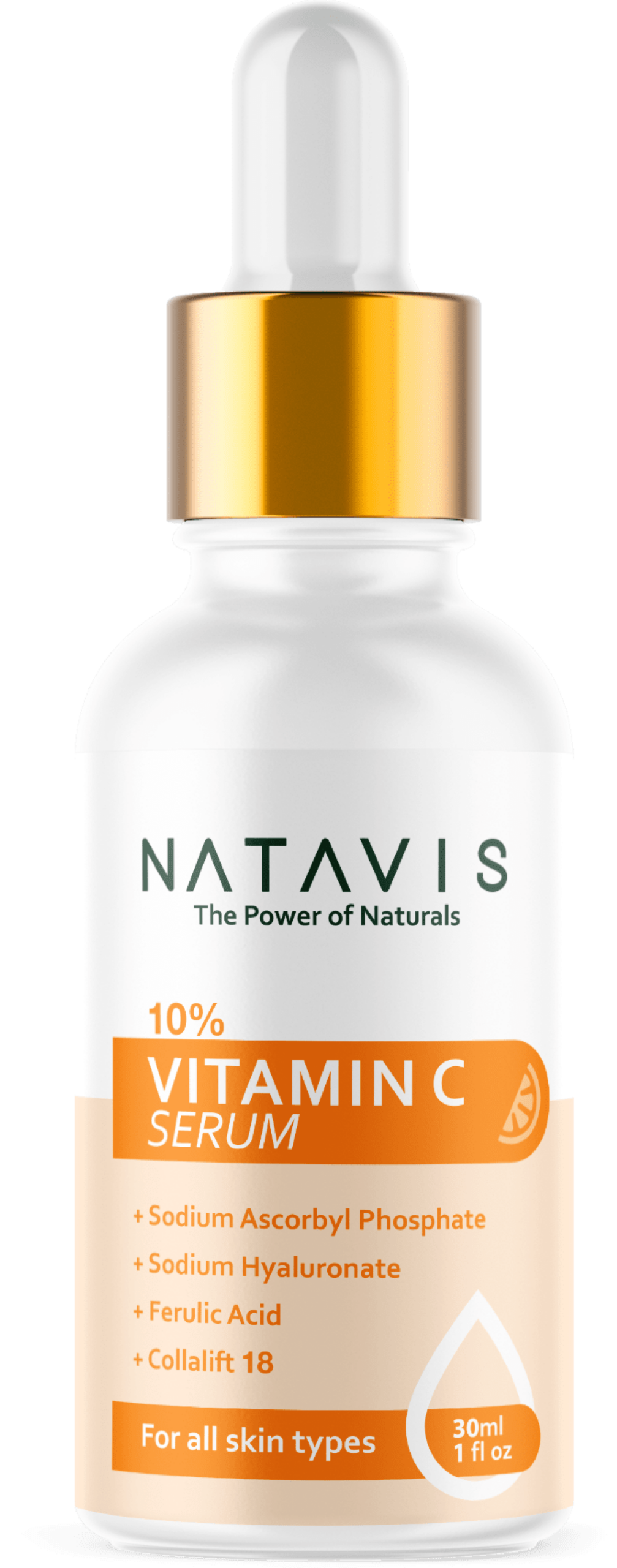 Natavis Vitamin C 10% serum, Sodium ascorbyl phosphate 10%, Ferulic acid, Collalift 18, Vitamin E, Hyaluronic Acid. Super star facial serum acts as potent antioxidant, protect skin from free radicals, photoprotection 8 times, boost collagen production, resist early signs of aging. The right choice for improving signs of premature aging, reducing the appearance of fine lines and wrinkles while keeping your skin strong and firm.