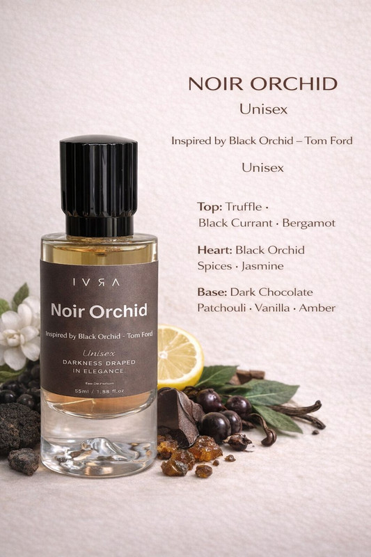 Noir Orchid by IVRA is a unisex luxurious dupe of Black Orchid by Tom Ford, capturing the same dark, bold floral character with a warm, seductive twist.