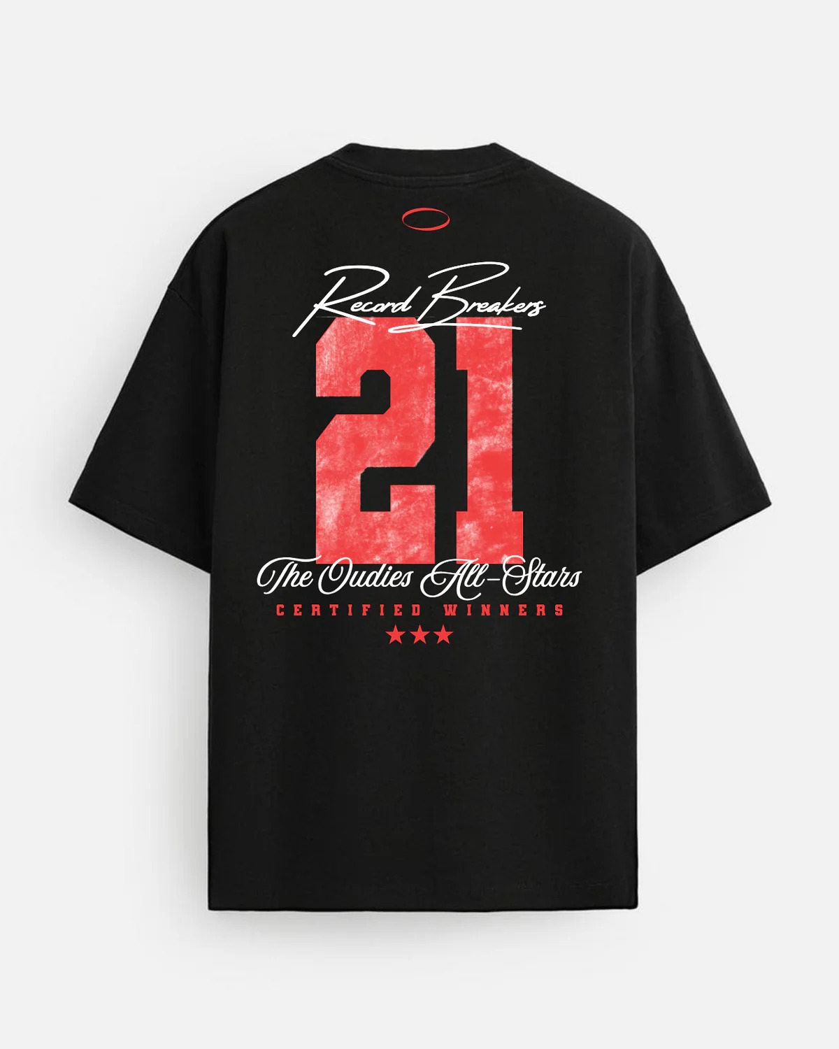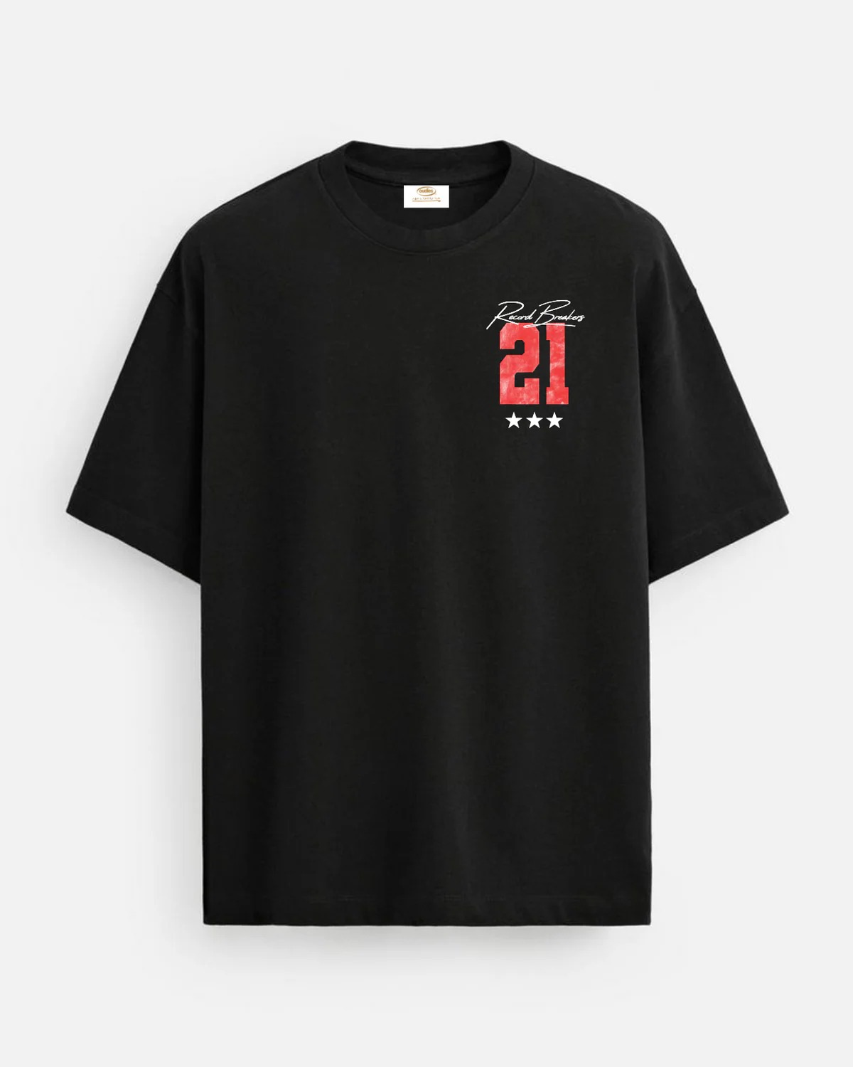 The Record Breakers Tee – No. 21 in Final Lap Edition brings that high-stakes, high-impact energy in a bold black base with striking red and white print. The number 21 hits front and center — a symbol of dominance, drive, and doing what others won’t.