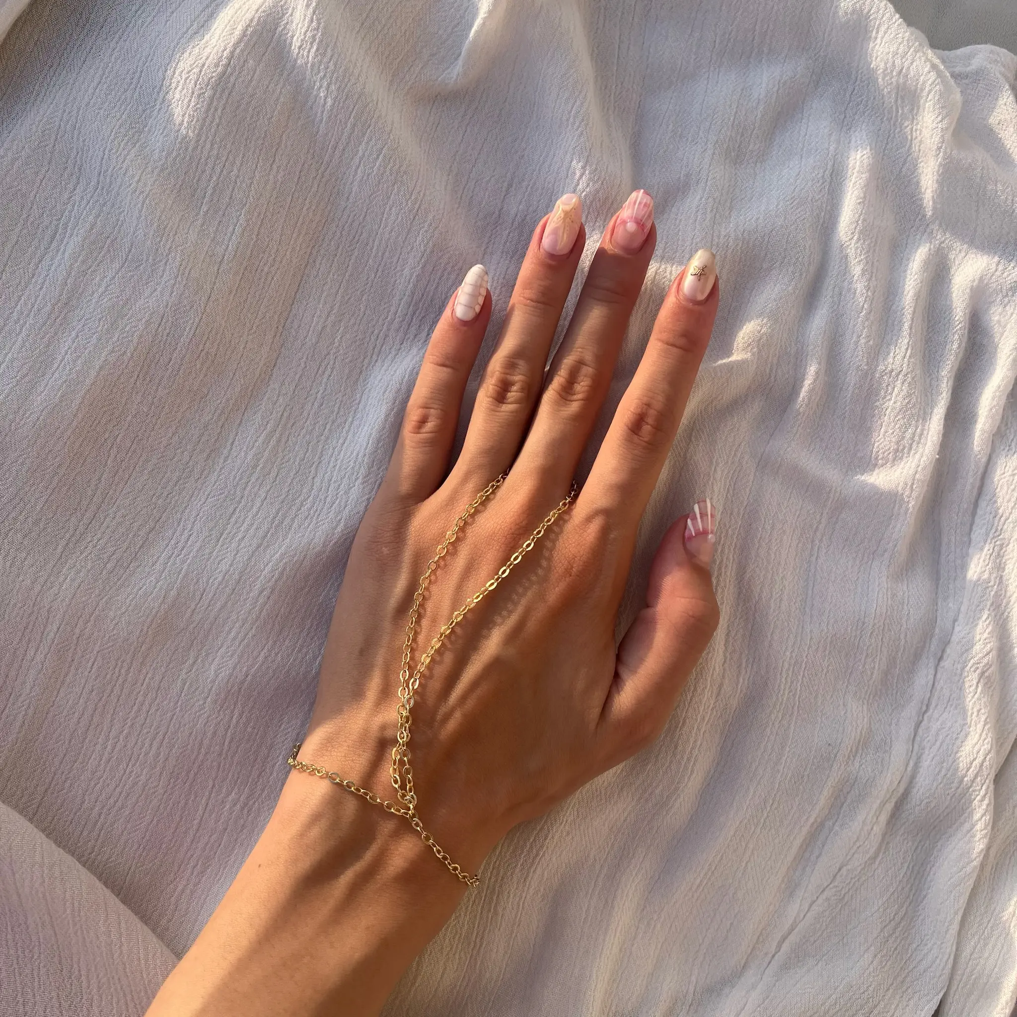 Standard size: Bracelet: 18 cms, Vertical part: 10 cms, Ring: 8 cms