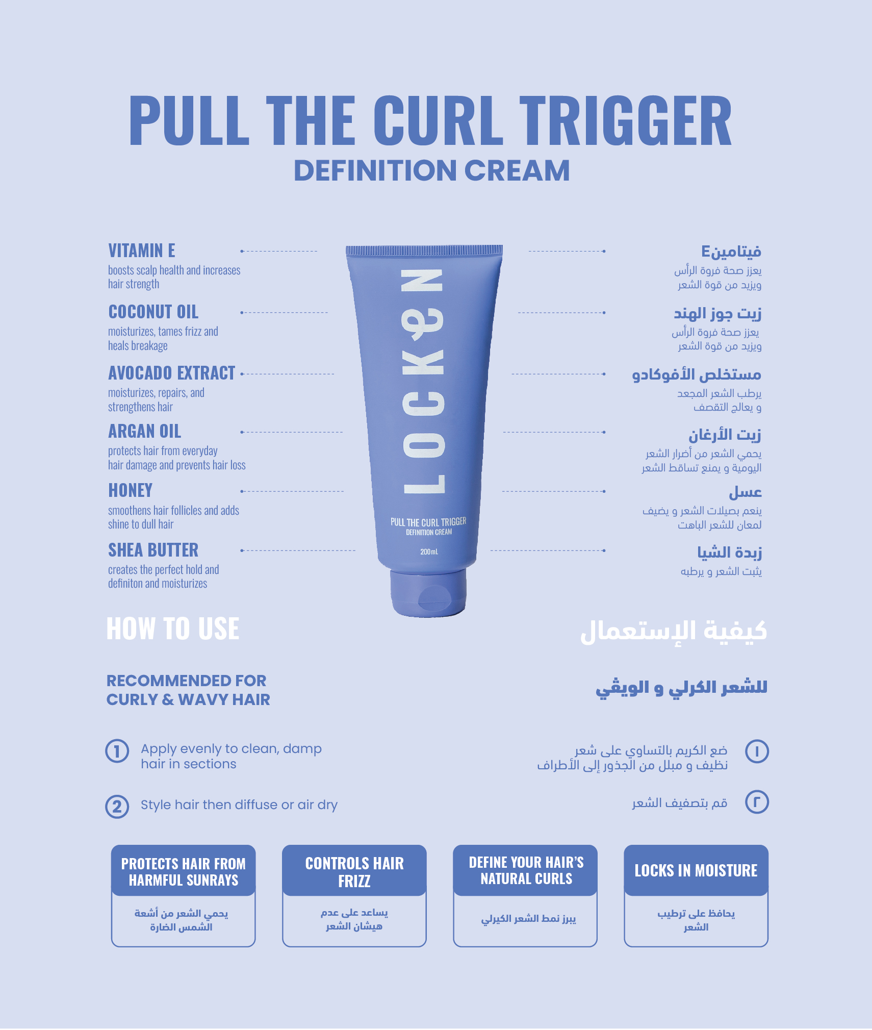 Pull The Curl Trigger Leave in Cream is a styling cream that will trigger your natural curl pattern revealing long lasting, frizz-free, shiny and super defined locks!